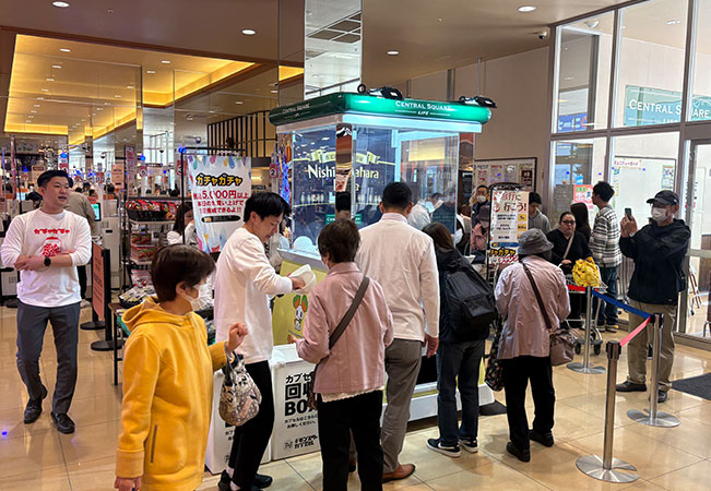 セントラルスクエア西宮原店ご担当者様からは、「巨大ガチャのインパクトにお客様がとても楽しんでくれた」「買い物にプラスαの体験が生まれ、フェスタの雰囲気づくりにも効果的だった」といったご評価をいただいています。